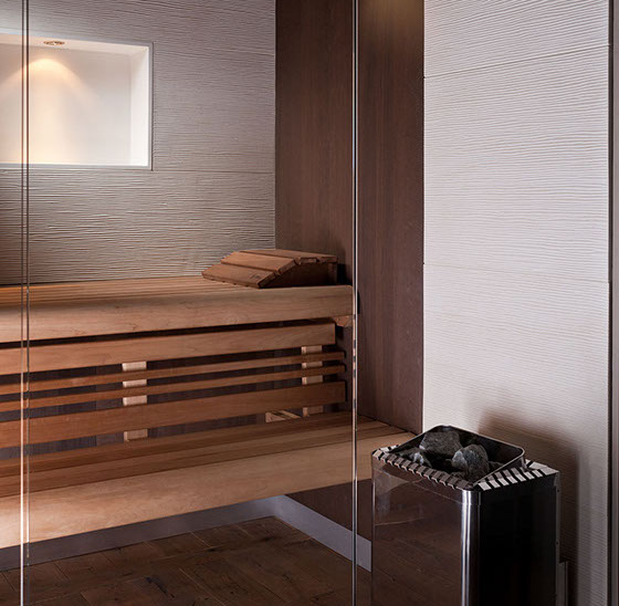 Detail Bio Sauna Wandbelag mit Handkeramik