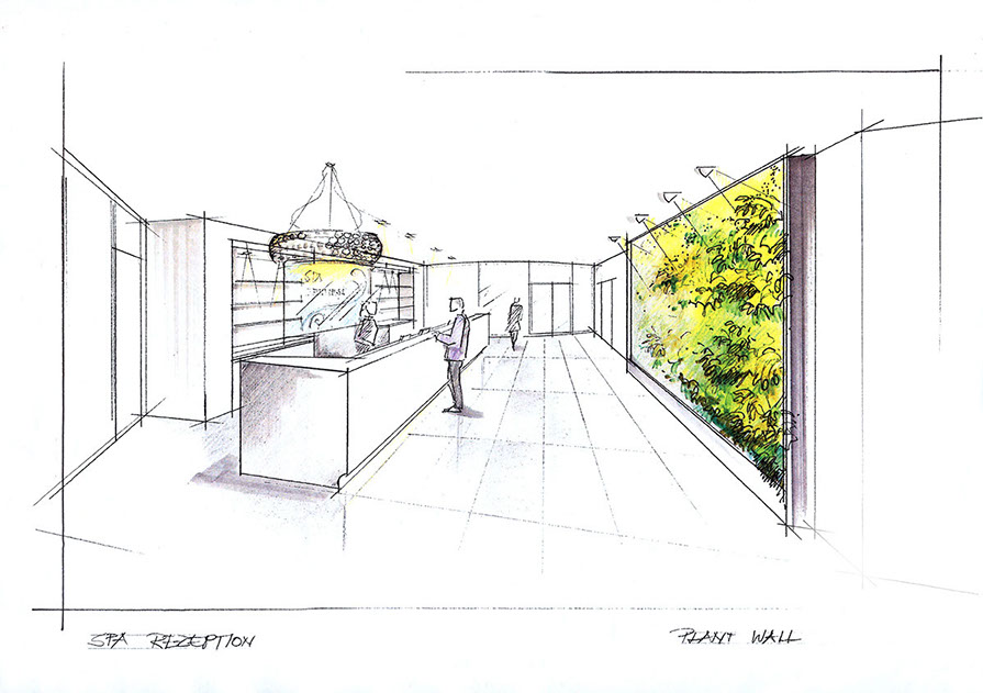 Hilton Alps Kitzbühel- Spa Empfang mit Plant Wall